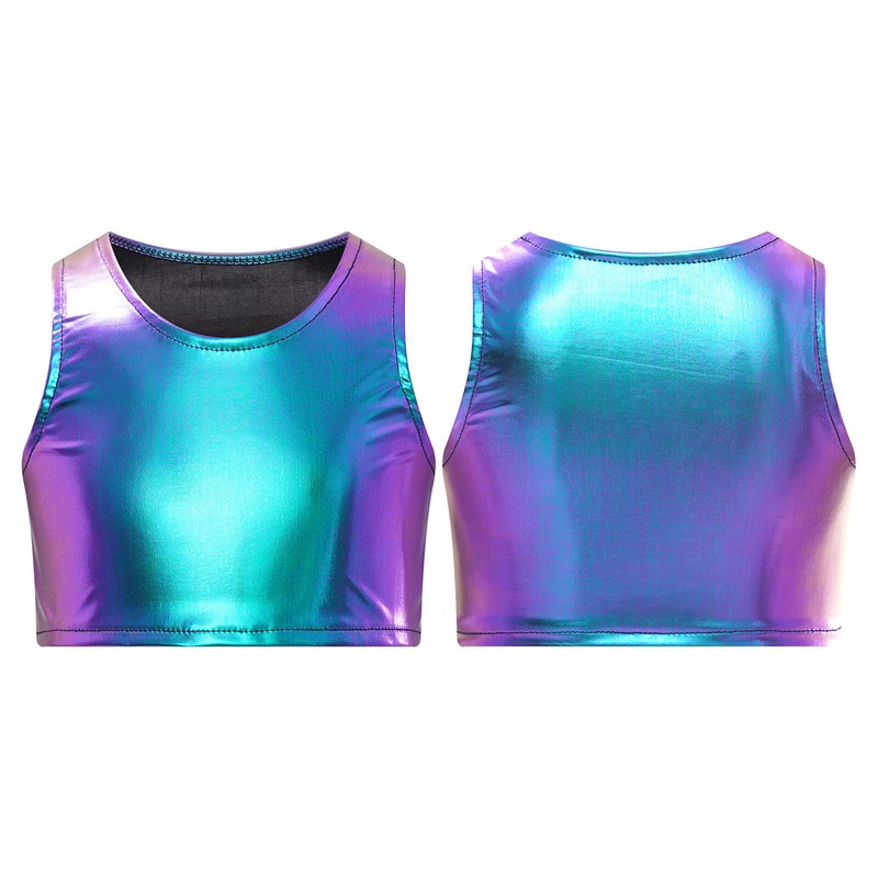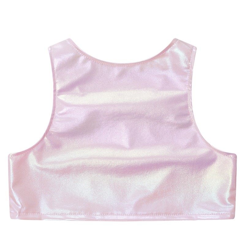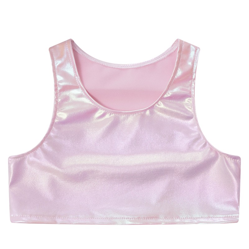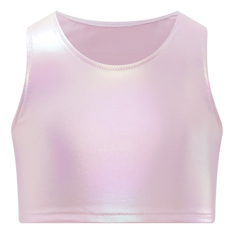 Sleeveless crop tank top is featured with metallic appearance to make your child eye-catching on the stage.