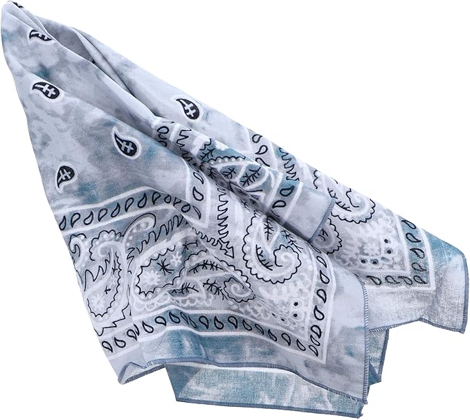 This is a softly colored tie-dye print bandana from Motique Accessories. These Bandanas can be used as hair covering, headband and necktie. They each measure approximately 22 inches by 22 inches.