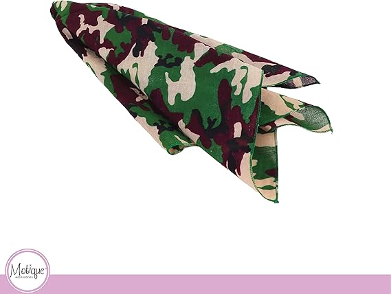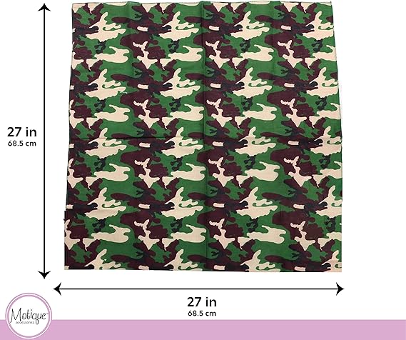 This is a quality extra large brightly colored bandana from Motique Accessories. Can be used as hair covering, headband, necktie, or mask. Measures approximately 27 inches by 27 inches.