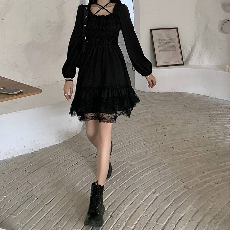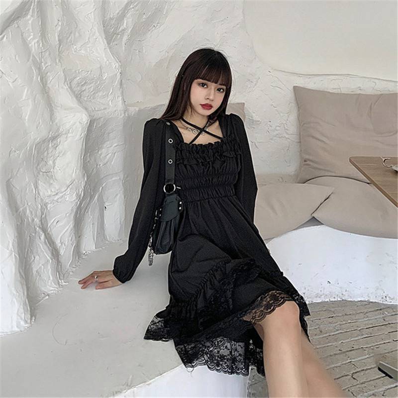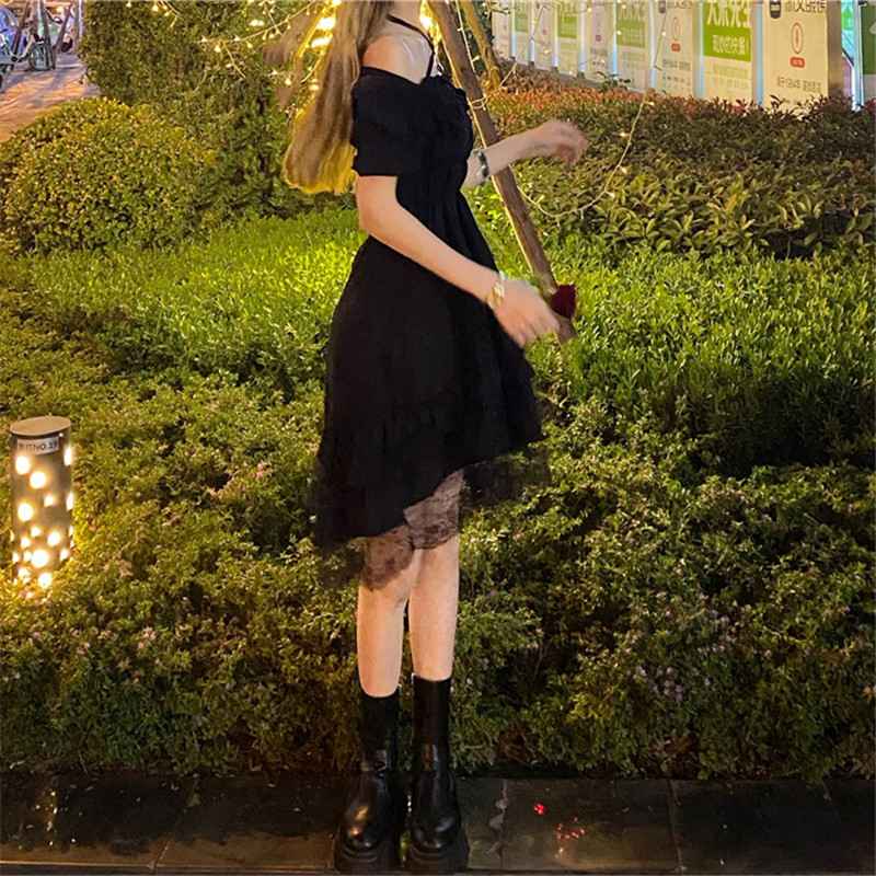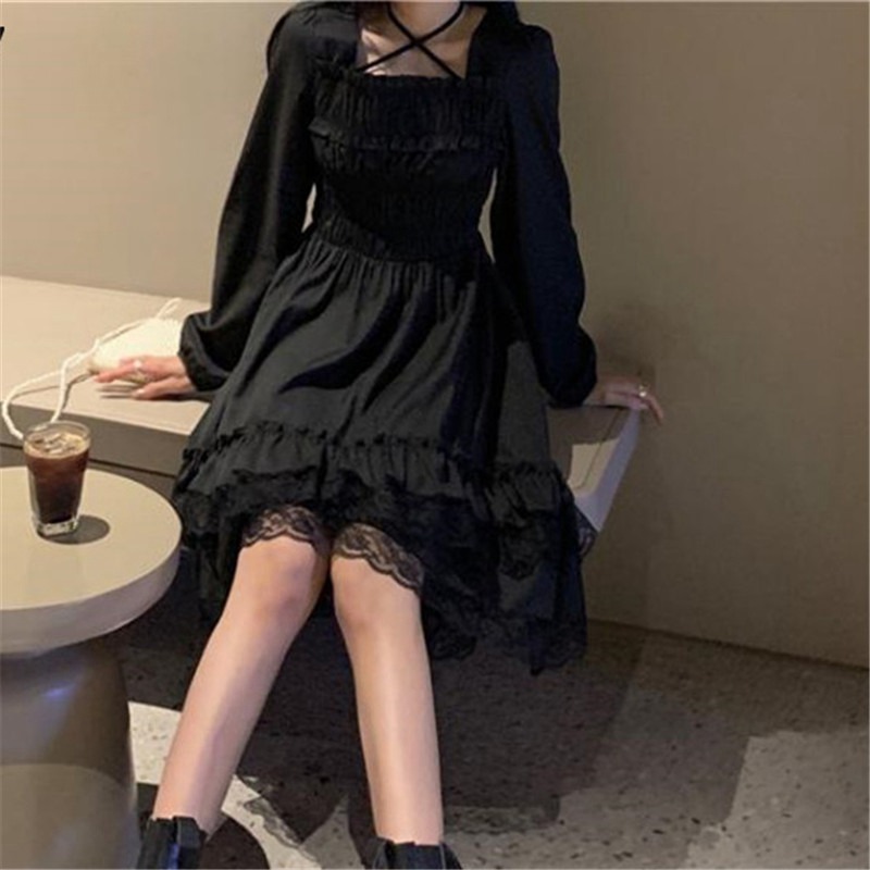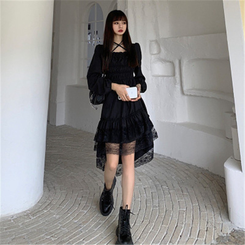 Party Dress Chic Dress Lolita Princess Gothic Women Lace Ruffles Irregular Dress