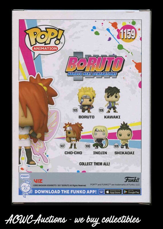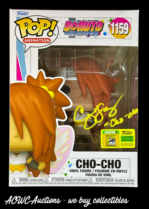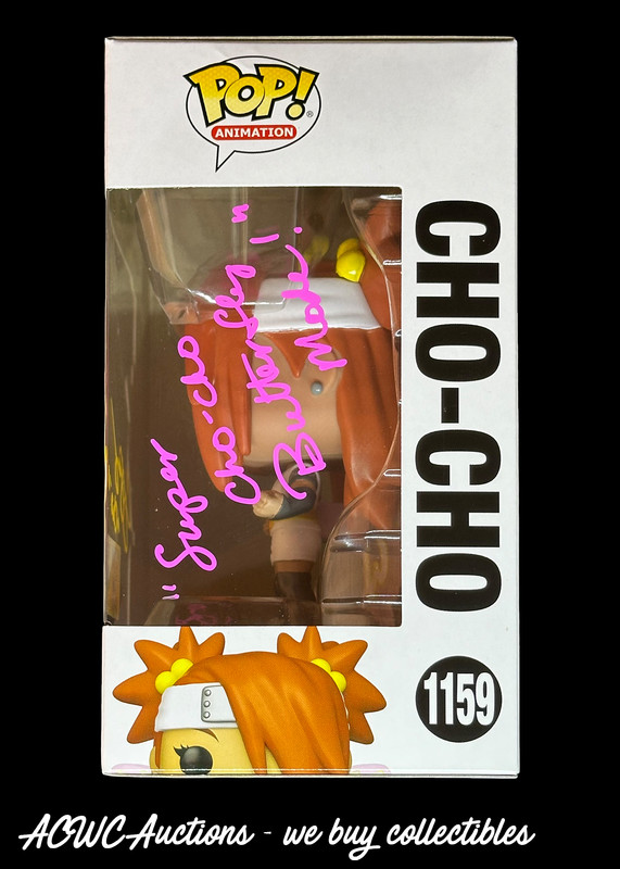 Funko POP! - Animation #1159 - Animation - Boruto - Cho-Cho (San Diego Comic Con Exclusive) - Signed and character inscribed with Yellow Sharpie paint pen on the front and inscribed "Super Cho-Cho Butterfly Mode!" with Pink Sharpie paint pen on the side, all by Colleen O'Shaughnessey, who voices Cho-Cho in "Baruto: Naruto Next Generation".