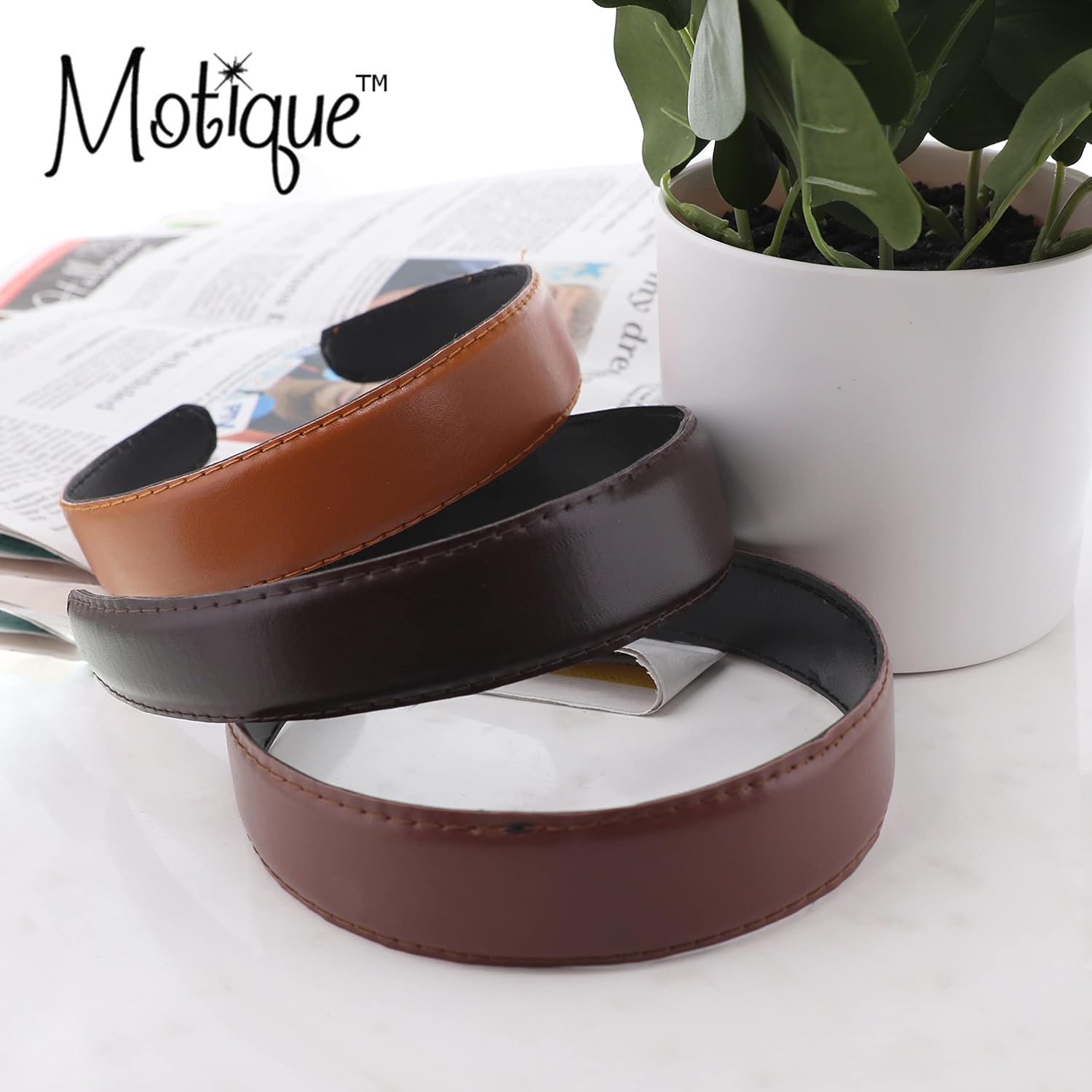 Motique Accessories 1 Inch Leather Headband with Stitching for Women and Girls