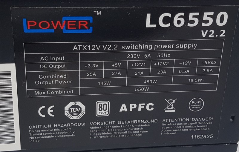 LC Power LC6550 V2.2 ATX Computer Netzteil Power Supply 550 Watt Schwarz Top. Der Artikel befindet sich in einem gebrauchten Zustand, technisch einwandfrei, Preis pro Stück.