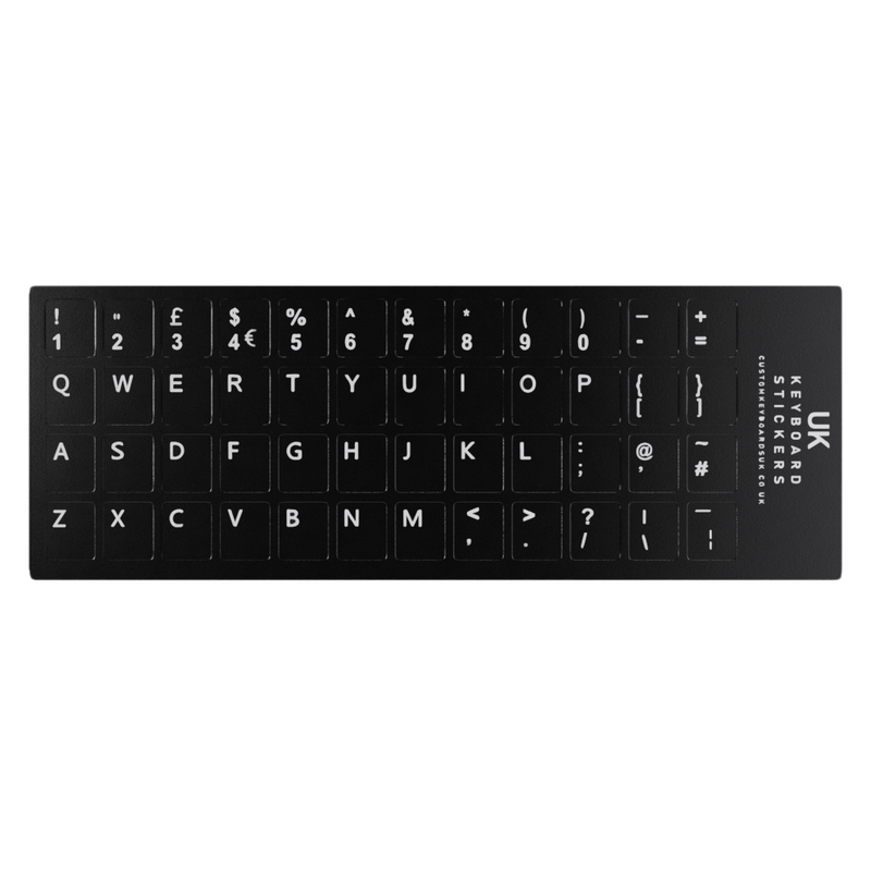 The UK English Black Keycap Repair Stickers are designed for use with QWERTY keyboards, which are the most common type of keyboard layout used in the United Kingdom. The stickers are printed with the characters and symbols that are typically found on a UK English QWERTY keyboard, including the letters, numbers, and special characters.