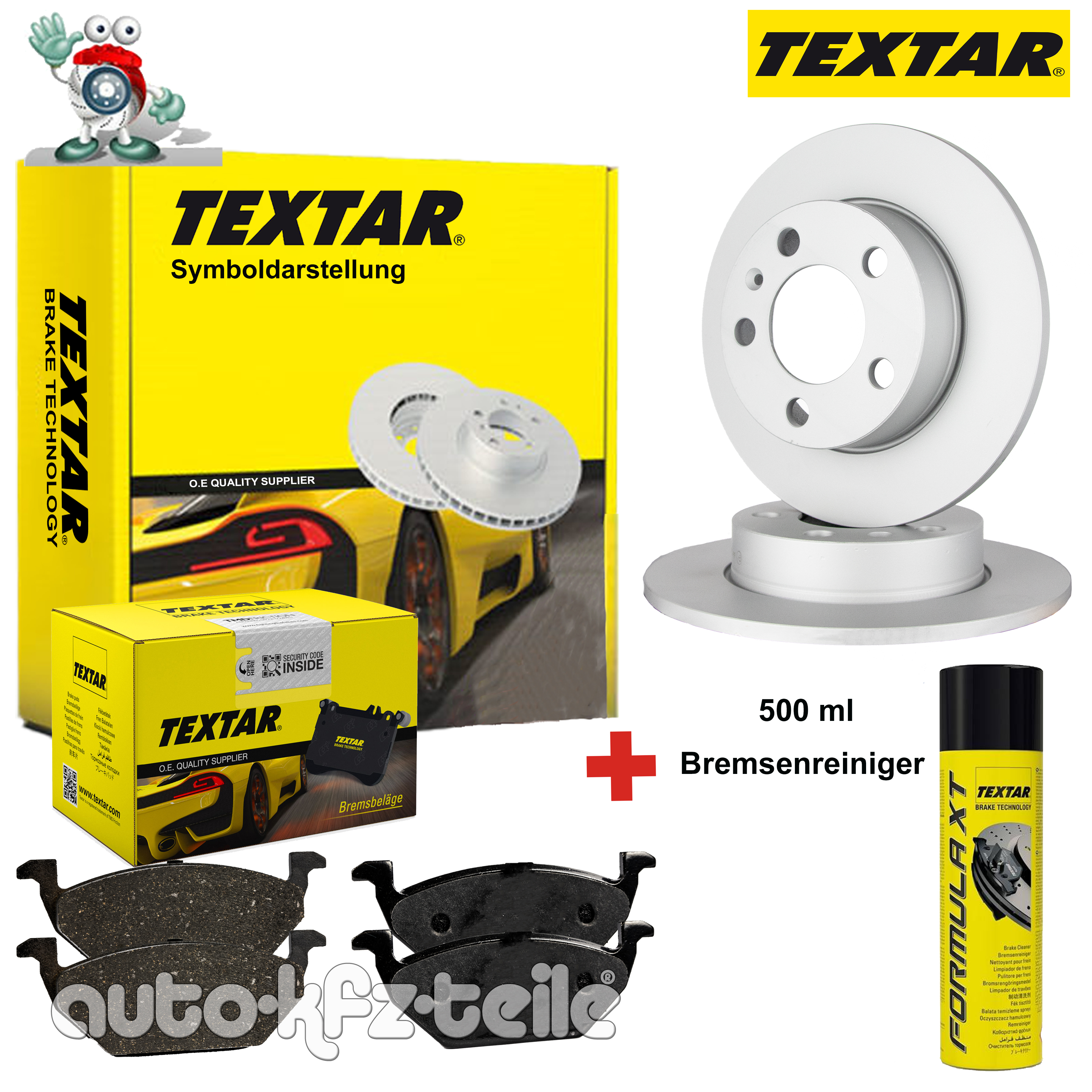Im Lieferumfang enthalten : Bremsscheibe,Bremsbelag Lieferumfang : 2x Bremsscheibe;1x Bremsbelagsatz, Scheibenbremse;1x Bremsen/Kupplungs-Reiniger Einbauposition : Hinten