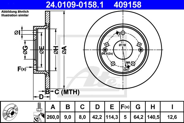 ATE Bremsscheiben HONDA CIVIC VIII Hintentchback (FN, FK) Ø260mm Hinten