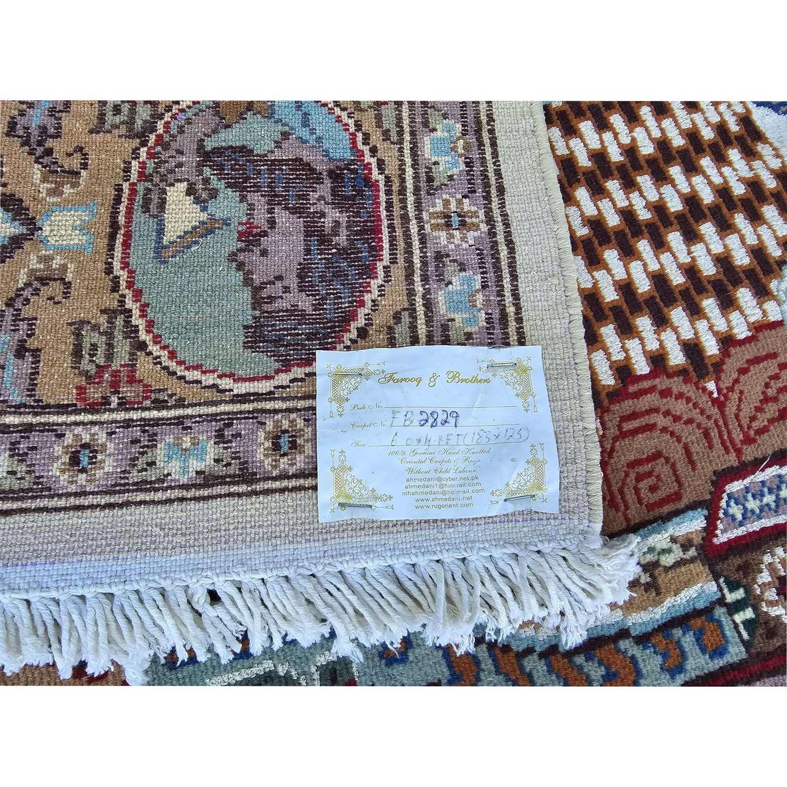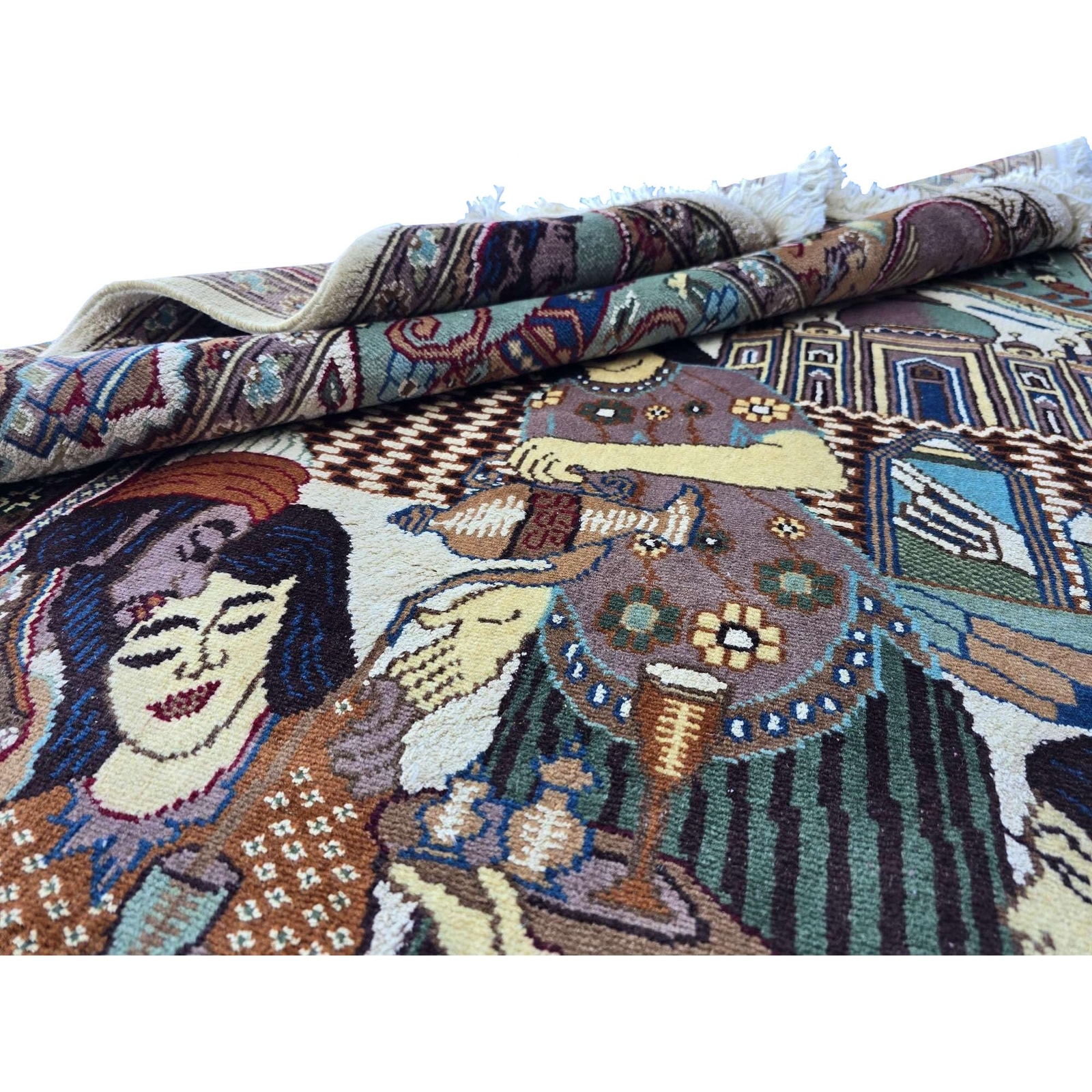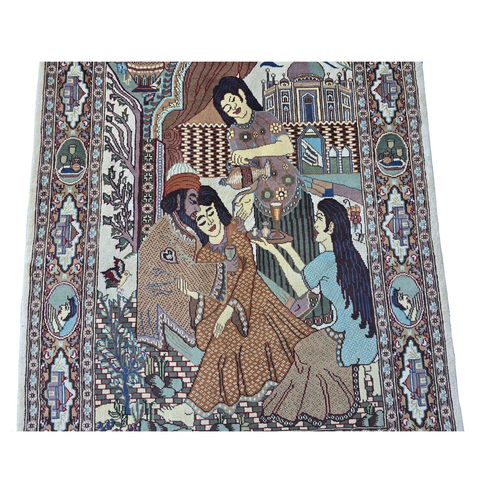 Al Ahmedani Linen Love Umre Khayam King Queen Love Story Hand Knotted Rectangle Area Rug Wonderful Design Home Decor Wool Silk Indoor Carpet (6.0 x 4.1)'. For the perfect combination of unique, beautiful style and high-quality durability, the attention to detail on these beautiful contemporary rugs is noticed as soon as you lay eyes on the carpet. The rug appears dull when viewed from one side, and shiny from the other side. Please view the picture at the bottom to see the bright side of the rug. This rug can help brighten up a room if you do not get much sunlight. Simply put the bright side facing the seating area and it will make the room appear surprisingly bright. Wonderful design with multi-color, easily compatible with most home decor. Blended color schemes match well with all styles of furniture and art. Give your home an elegant touch with this area rug. Great for any decor, it adds texture to the floor and complements any decor. 100% Genuine Hand Knotted-Rug not hand tufted.