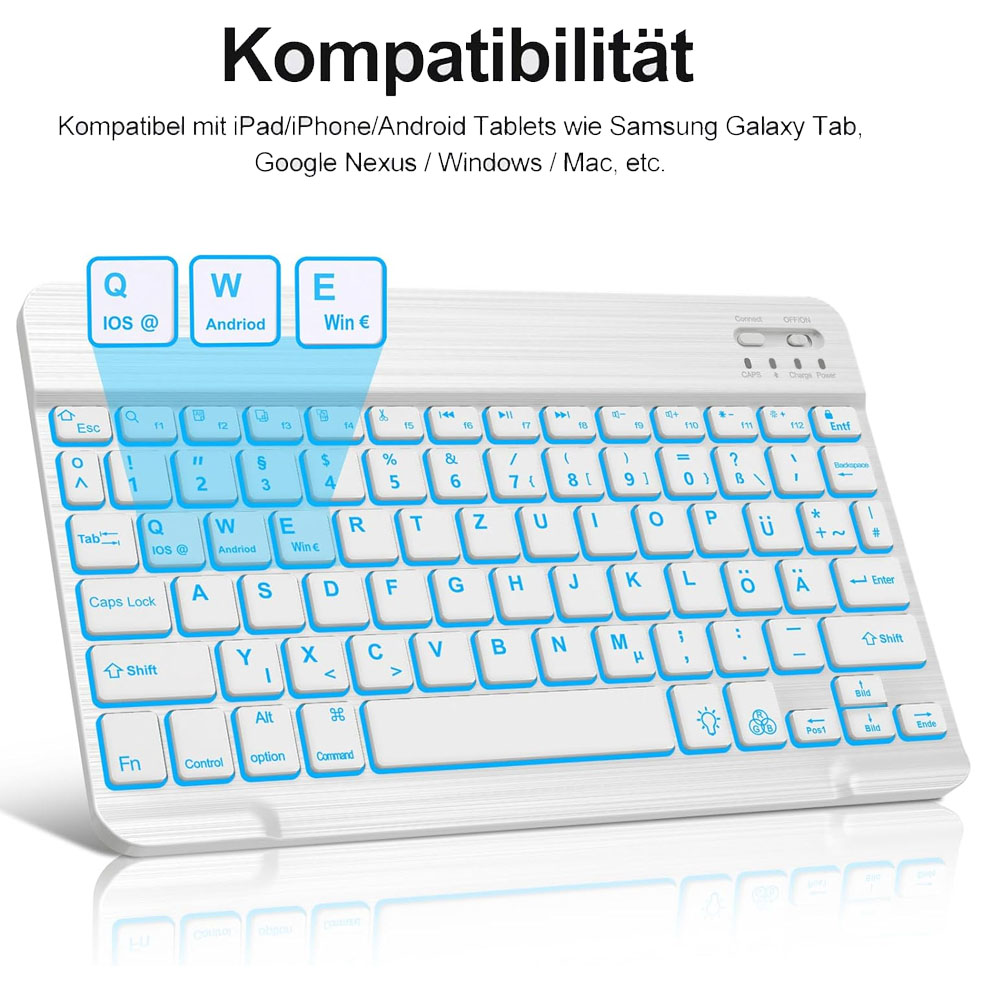 1. UNIVERSELLE BLUETOOTH-TASTATUR: Für iOS-, Android- und Windows-Tablets. Tablet, Laptop, Handy und Computer etc. Solange es eine Bluetooth-Funktion gibt, die direkt verbunden werden kann. Wie iPad 10.2 7. 8. Generation, iPad Pro 11 Zoll 2021 2020 2018, iPad Pro 12,9 Zoll 2021 2020 2018, iPad Air/iPad mini, Samsung Tab A7 S7 usw.