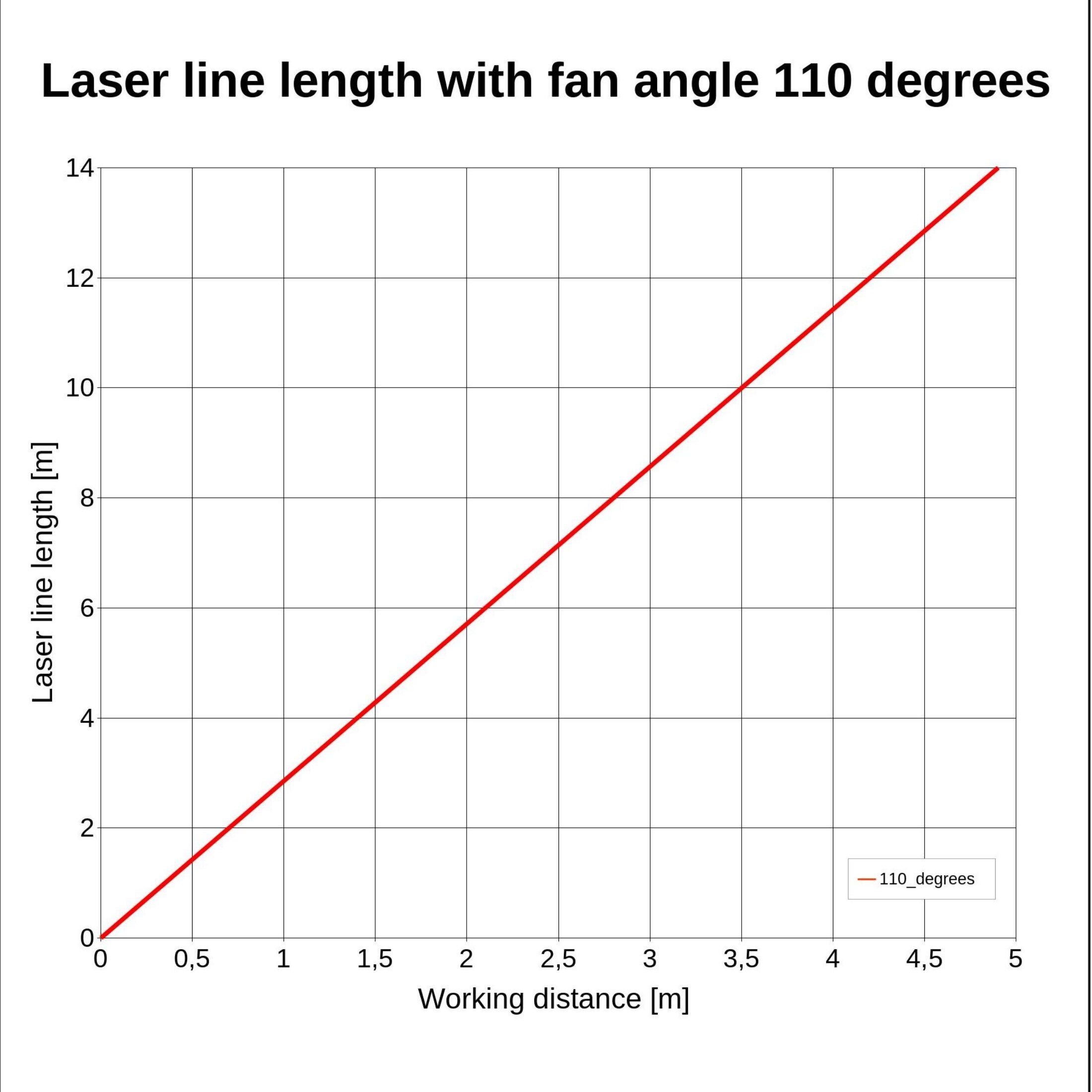 - Der Öffnungswinkel 110 ° erzeugt, bei einem Arbeitsabstand von 3m, eine Laserlinienlänge von 6m.