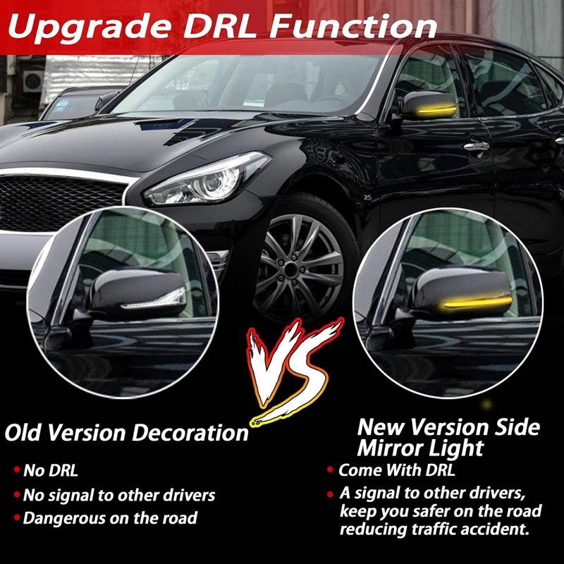 Dynamic turn signal,scroll smoothly.Easier to be seen by other drivers when you are turning right/left.