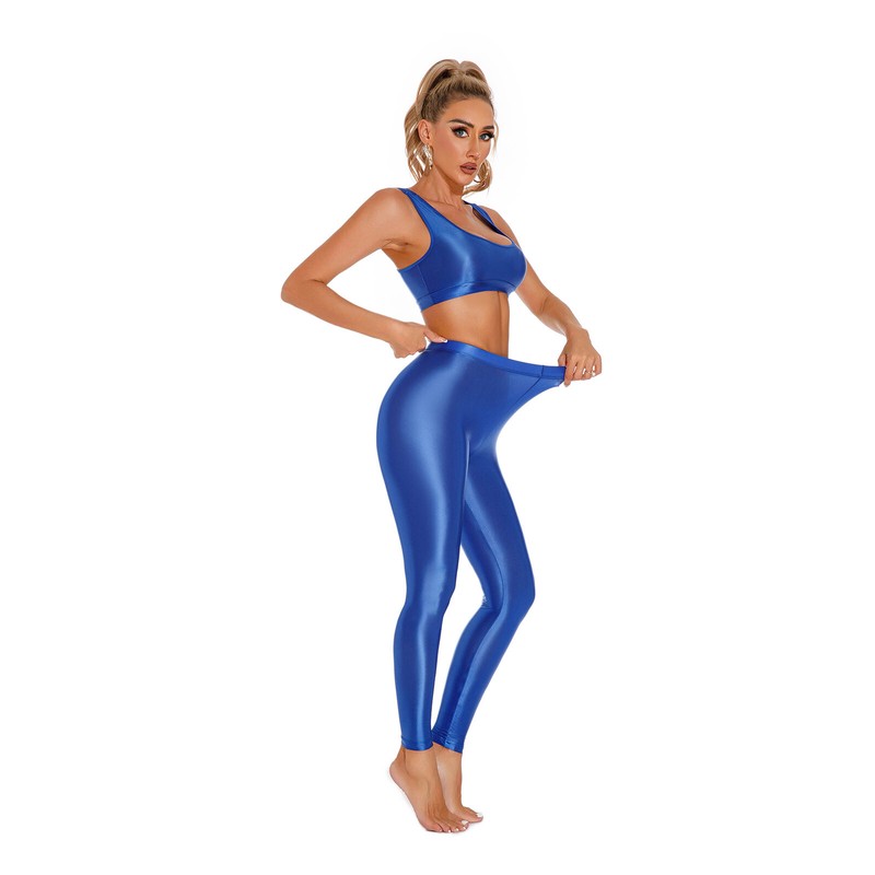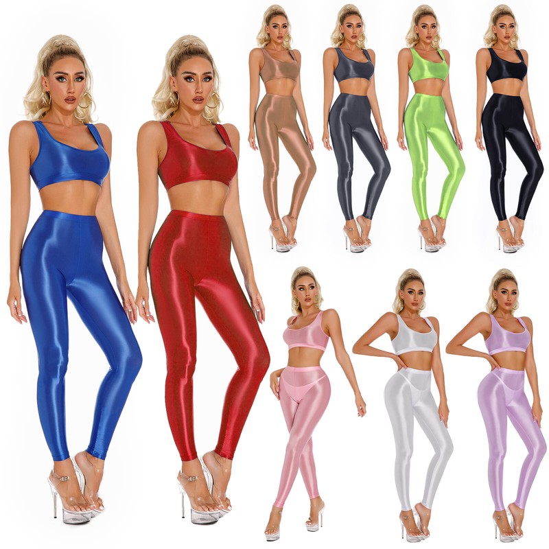 Womens Set Glossy Suit Sleeveless Outfits Skinny Tights 2 Piece Crop Top Sexys