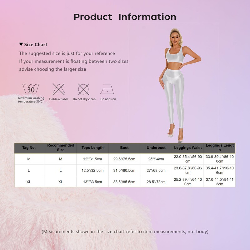| Tag No. | Recommended Size | Tops Length | Bust | Underbust | Leggings Waist | Leggings Length |