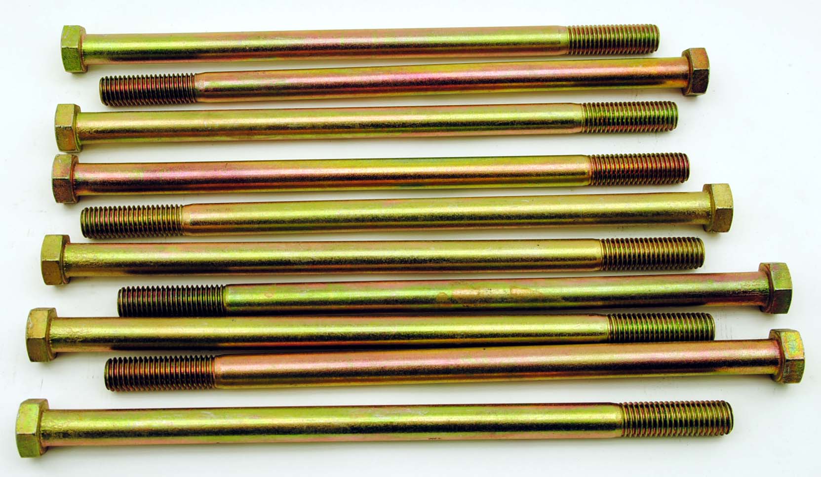 These grade 8 yellow zinc plated fasteners are 5/8-11 thread and are 12" in length with a 2" thread and 15/16" hex.