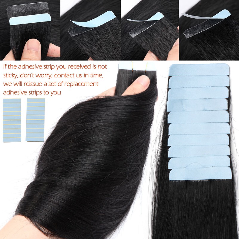 【High-Strength Tapes & Easy to Take Out】-- Specially developed high-strength invisible tape.Tape in hair extensions specification: 1.5inch width, 20 Pieces, 50g Per Package. Recommend 2-3 sets for thick full head. 14-24inch available.