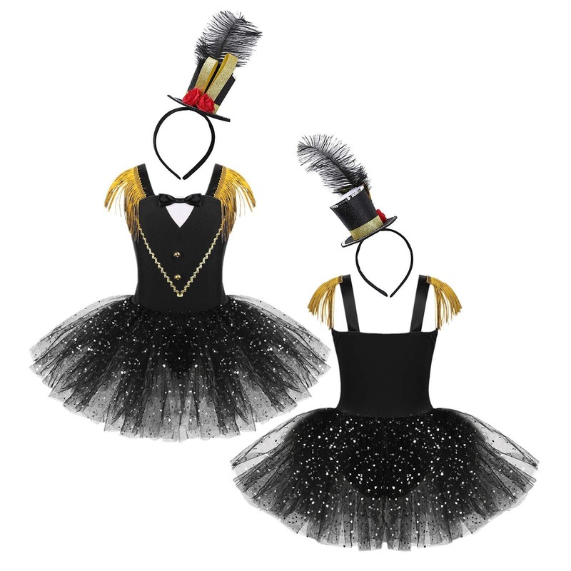 Set Include: 1Pc Leotard Costume Dress, 1Pc Mini Top Hat Headband