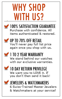 Since 1980, we have earned our reputation as a highly regarded and trustworthy jewelry retailer by constantly offering superior quality for new, pre-owned watches and for new & estate jewelry at great prices.