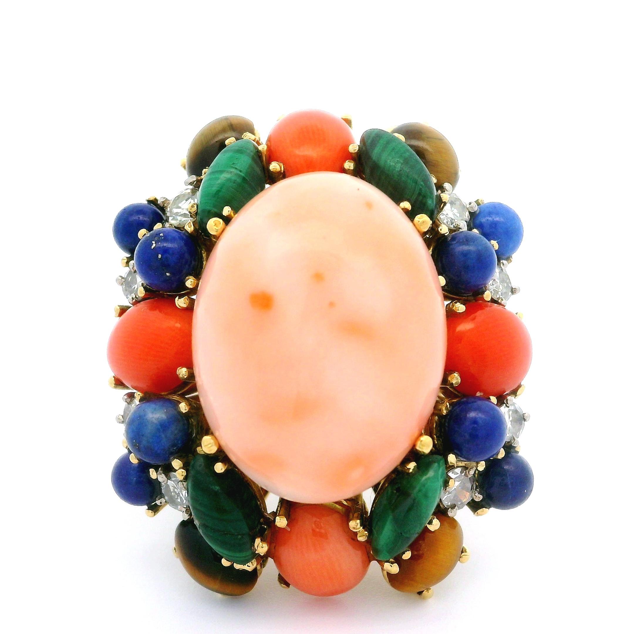 (1) Natural Genuine Coral - Oval Cabochon - Prong Set - Mottled Pink Angle Skin Color - 20.15 x 15.32mm (approx.)