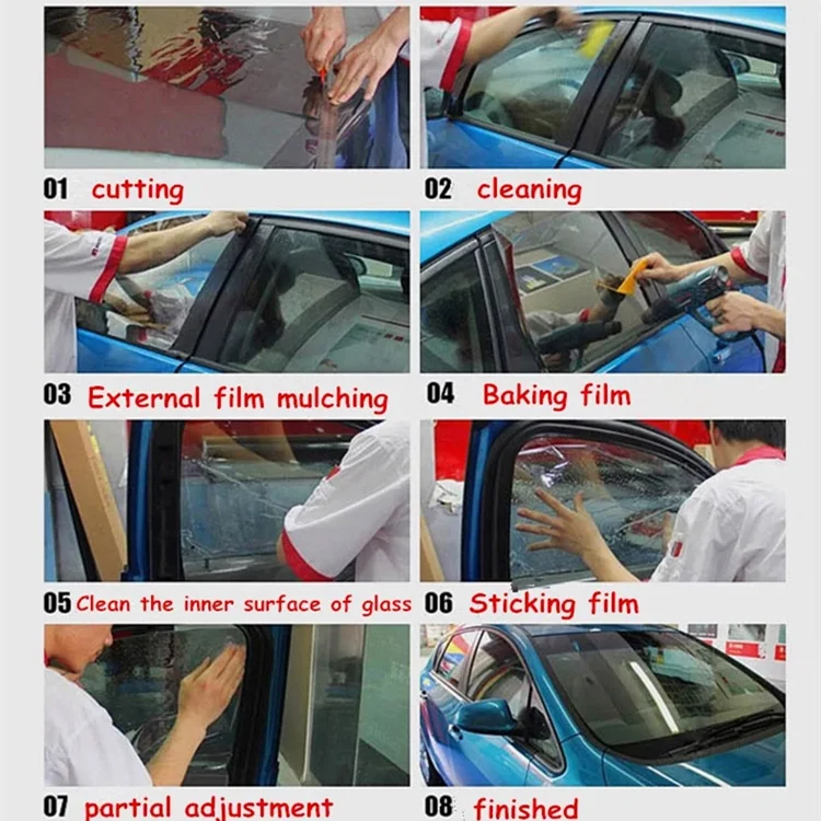 Performance of car window film: 1.High heat rate In the hot summer, it can be separated by infrared, ultraviolet damage to the body,and save air-conditioning energy. 2.To prevent fading It will enable the car to reduce the fading of goods and decorating.Greatly reduced the fading of goods and decorating in the car. 3. Preserve the privacy After the film can be effectively protect the privacy , improve the car's comfort,and make it more attractive. 4.Safety explosion-proof It can effectively prevent the flying glass fragments, ensure belongings and personal safety. 5. Anti-dazzle It can reduce the solar heat increase, effective in reducing glare, especially in the glare mirro 6.Anti-scratch Scrub resistance and durable. Note: 1.Due to the manual measurement and different measurement methods, please allow 2-3cm deviation. 2.Please be reminded that due to lighting effects and monitor's brightness/contrast settings etc, the color tone of the website's photo and the actual item could be slightly different. We are wholesale factory,we accept custom make size and we have so many other model films,if you interested in,you can leave message to us,we'll respond you asap.
