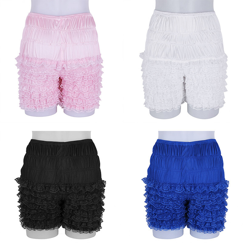 Elastic waistband, with tiered ruffle lace for decoration, pull on closure.