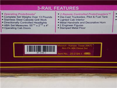 You are looking at a great early MTH item from 1999. This is one of the more desirable MTH items. It is the ABA unit TEXAS SPECIAL PA diesels. With instructions and box.