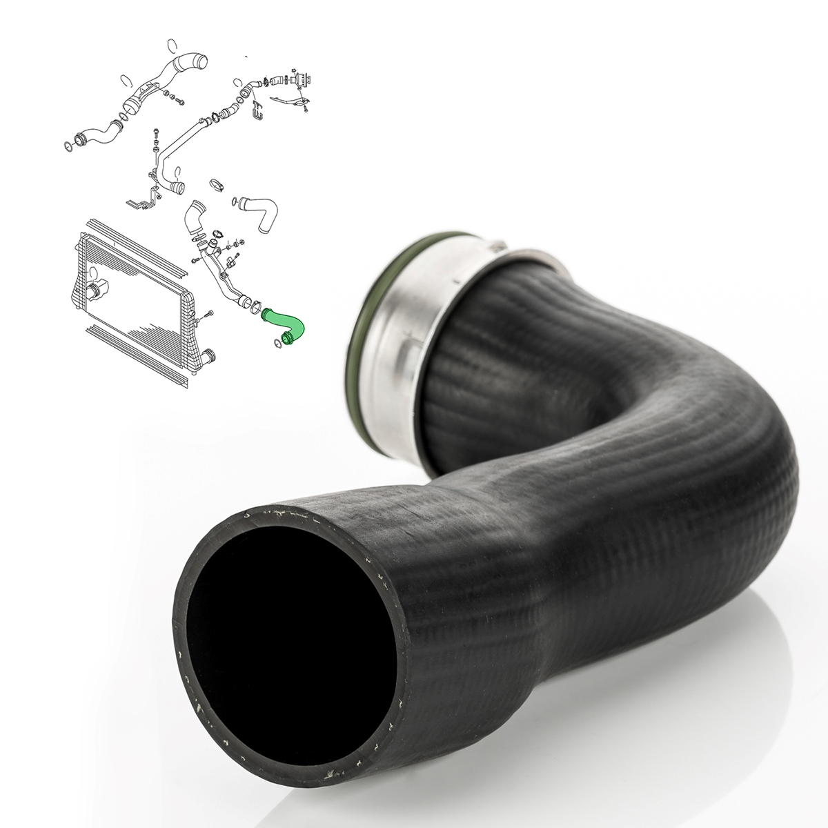 - für 1.8 TFSi, 2.0 GTI / RS / TSI Motoren - Einbauposition: Motorraum, Ladeluftkühler, links unten - Material: Gummi mit Gewebeeinlage - Material Kompressionsring/Verdichtungsring: Edelstahl - Innen-Ø an den Enden: ca. 56 mm / 59 mm - Außen-Ø an den Enden: ca. 66 mm / 68 mm - inkl. Halteklammer 68 mm