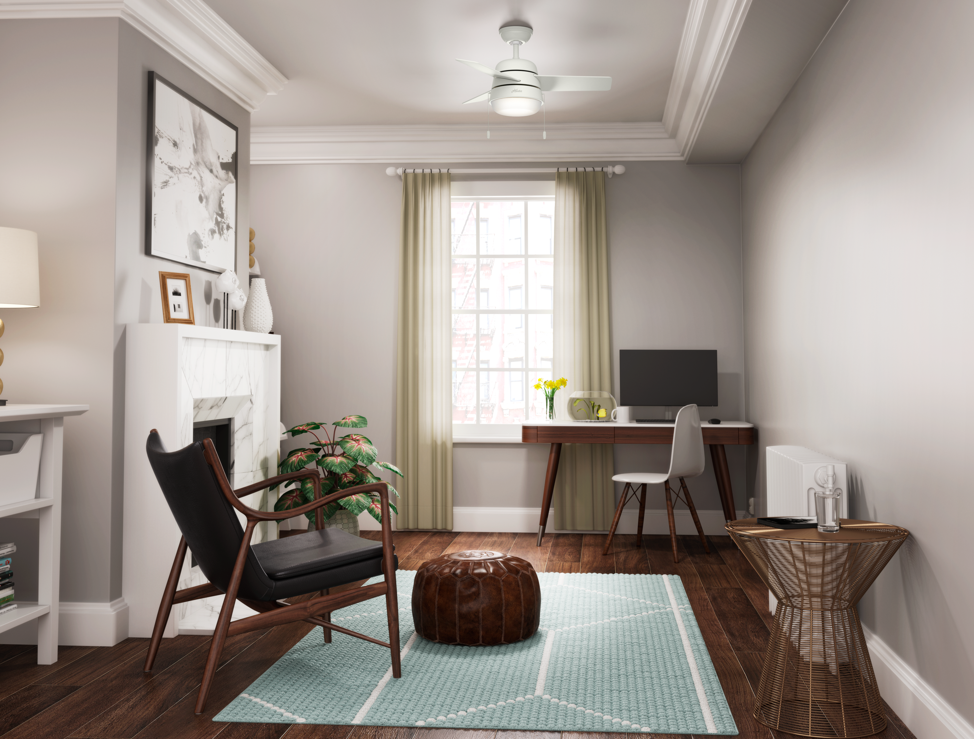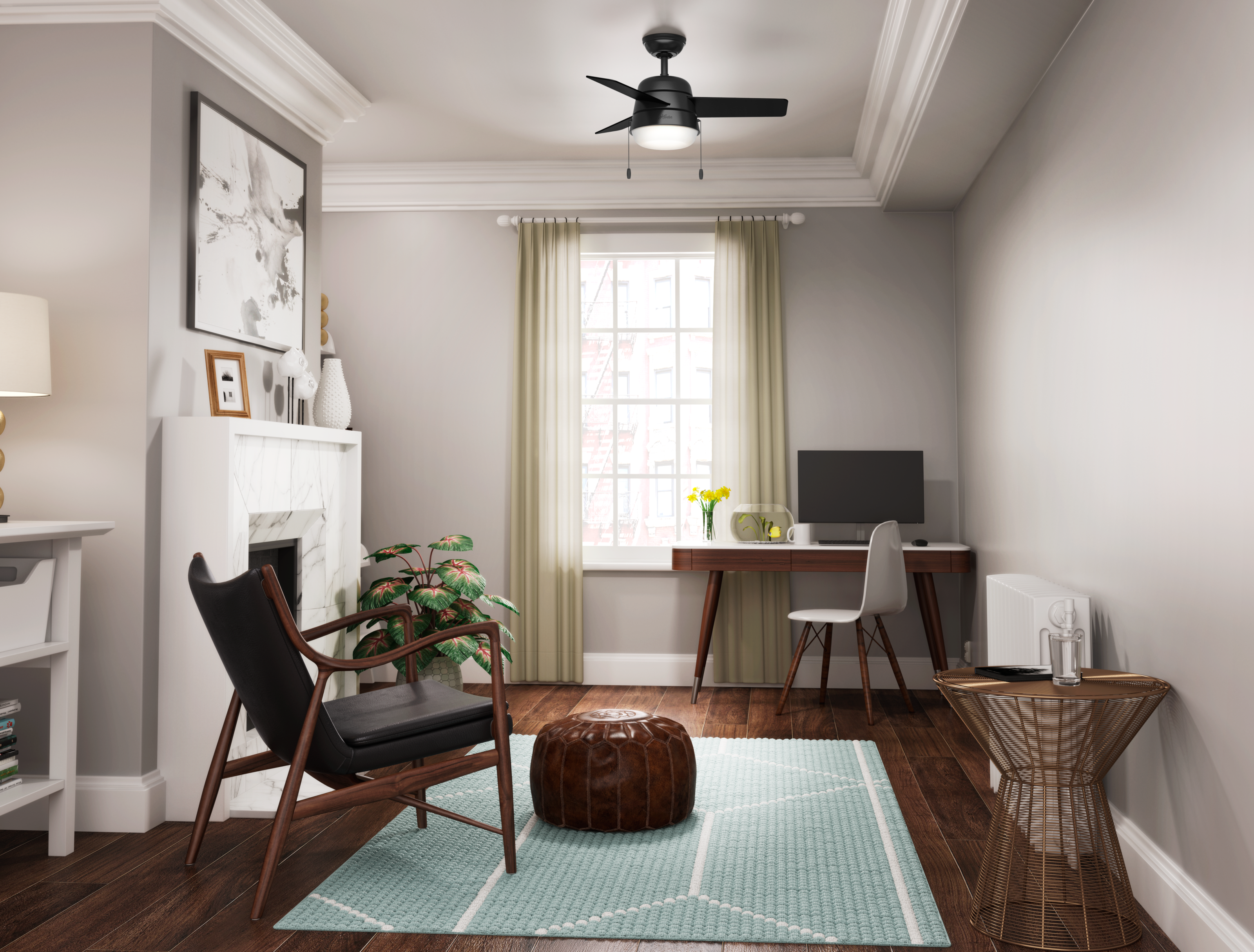 The Scandinavian-style lighting complemented by a mid-century color palette along with the rounded edges throughout the Aker gives it a soft, modern look. With a 36-inch blade span, these small ceiling fans with lights are perfect for spaces like home offices, hallways, and laundry rooms. But don't let the size fool you – the Aker is quite powerful when it comes to airflow and keeping you cool. Energy-efficient LED bulbs provide just the right amount of light while the reversible, three-speed WhisperWind® motor delivers ultra-powerful air movement with whisper-quiet performance.