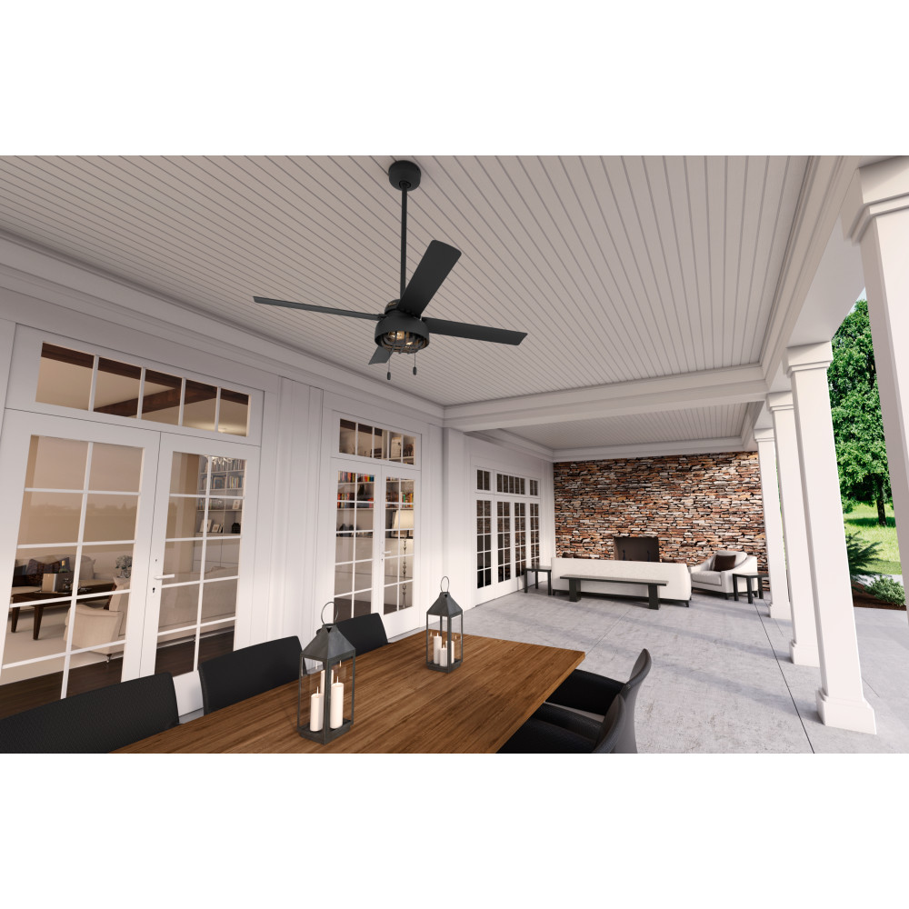 The unique exposed caged design with Edison LED light bulbs on the Spring Mill outdoor ceiling fan adds the finishing touch to your modern industrial style rooms. This damp-rated ceiling fan is perfect for outdoor and indoor spaces exposed to moisture and humidity including covered patios and garages. The included ceiling fan pull chains make it easy to operate the fan and light functions.