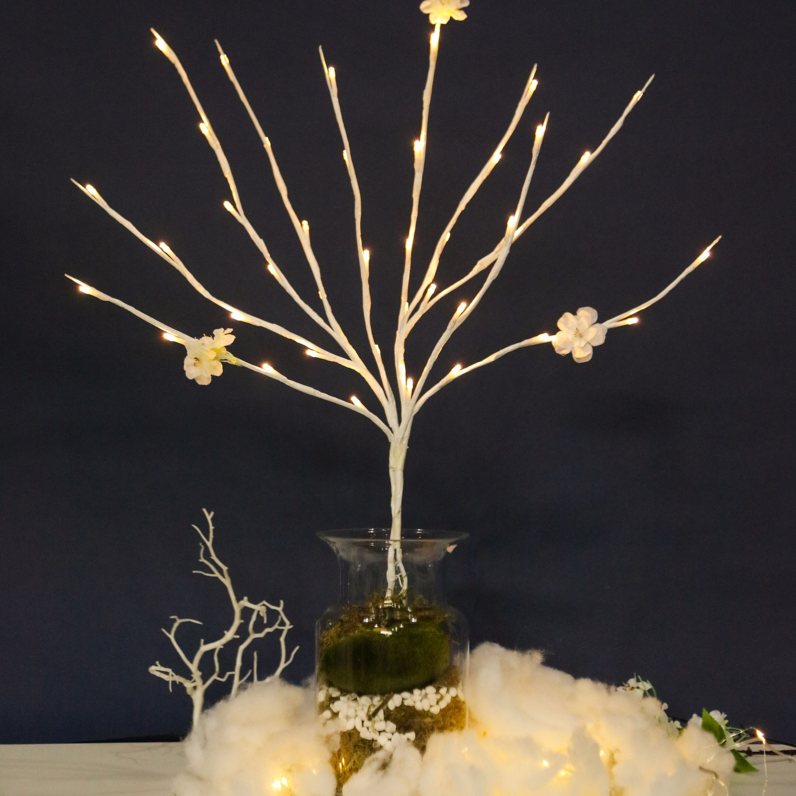 The LED branches are a fantastic addition to your party decorations. Use these LED branches with blooms accents for home decor on tables, or wedding centerpieces to create the decorations of your dreams!