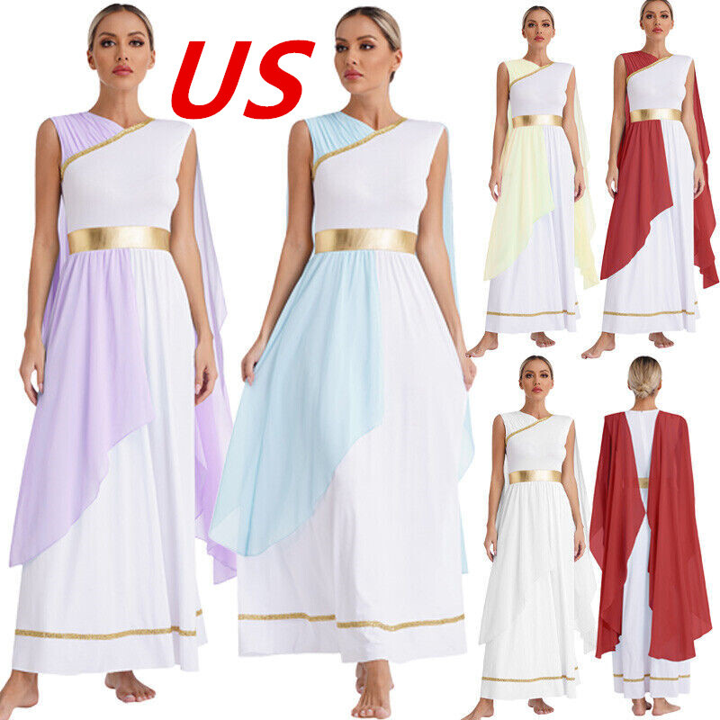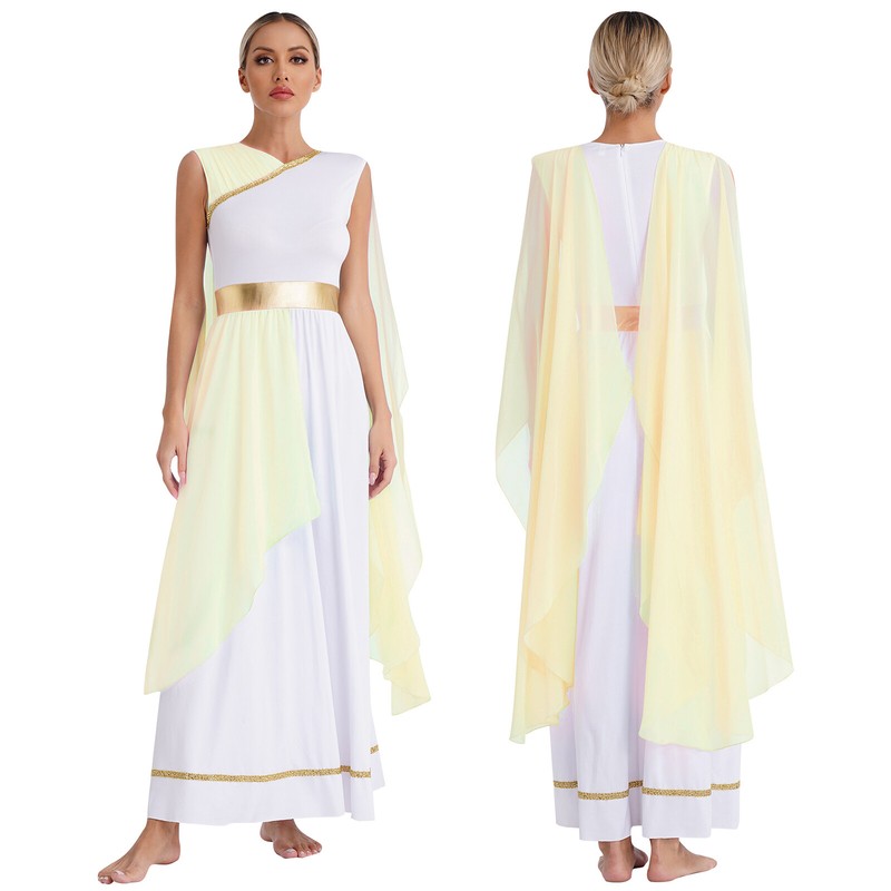 Class ancient toga dress dresses up you as Roman queen, Greek stunner, princess and nobility, pairing with wreath, scepter and gold jewelry.