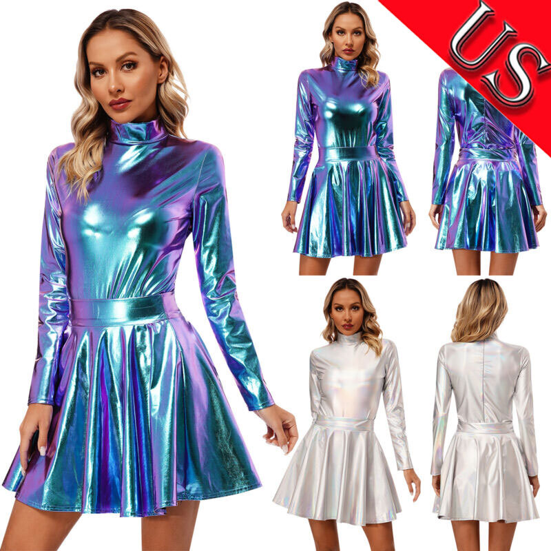 Womens Cocktail Party Dress Gymnastic Bodysuit Sparkle Dancewear TurtleneckUSD 4.99