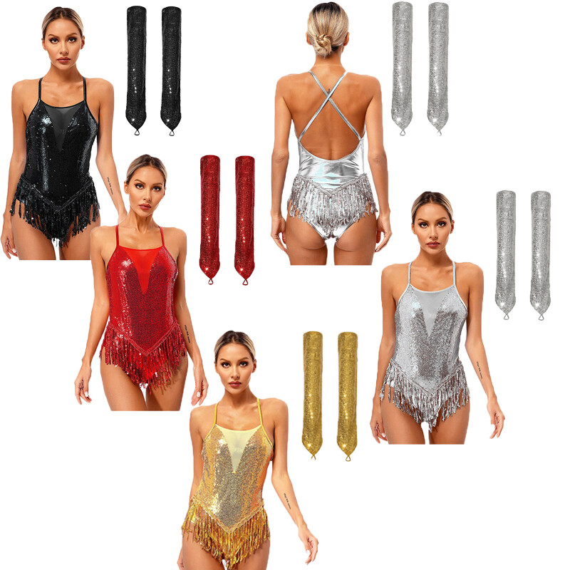 Women Sequins Tassel Latin Dance Leotard Jazz Fringed Bodysuit Dancewear CostumeUSD 8.59