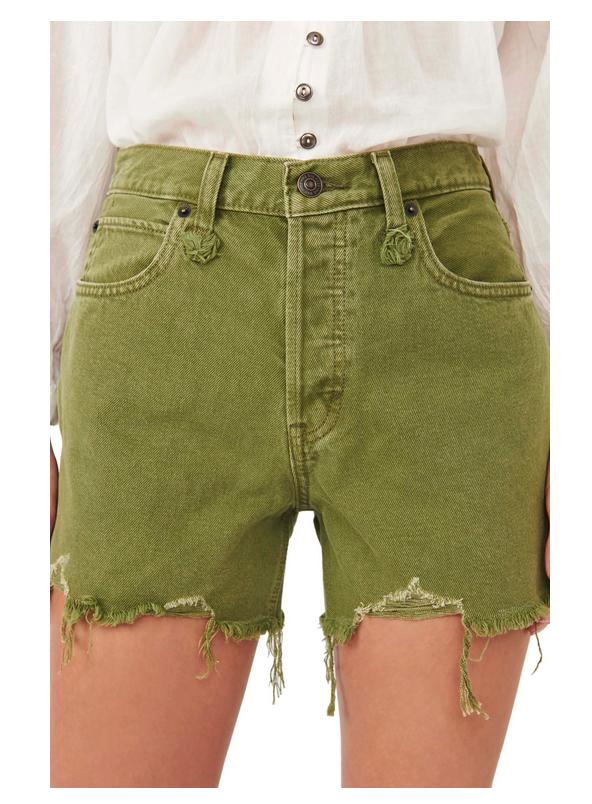 Free People Makai Ripped Cutoff Denim Shorts Army Size 25 1463