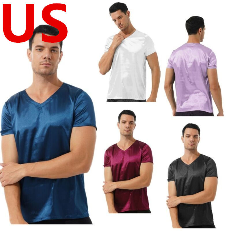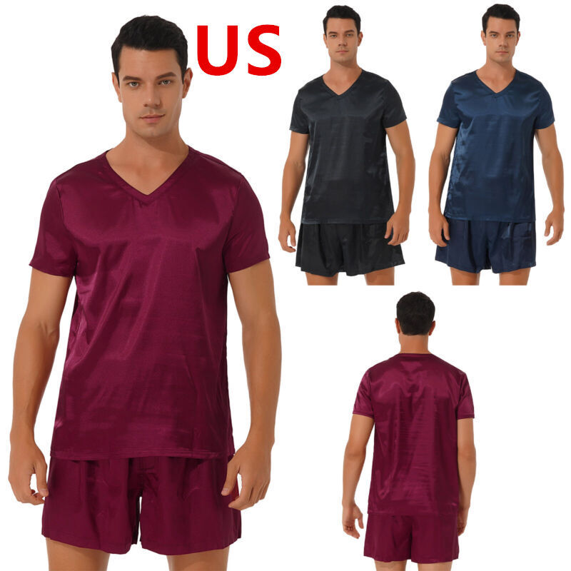 US Mens Robe Silk Satin Kimono Bathrobe with Belt Smoking Jacket Robe Nightwear
