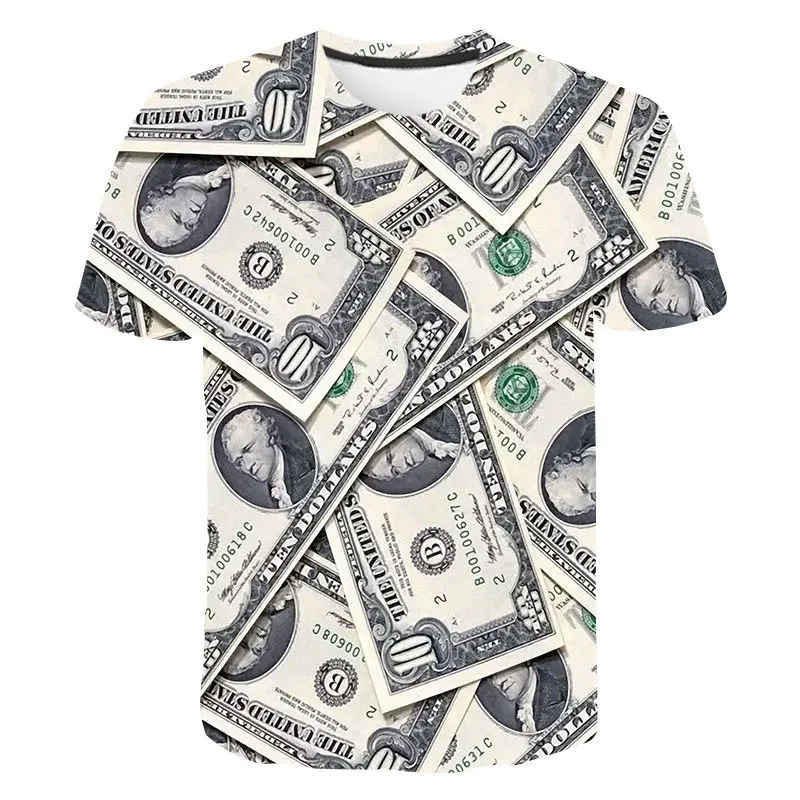 Summer Paper Money Pattern Men's T-shirt Hip Hop 3d Print Personality Neck Short