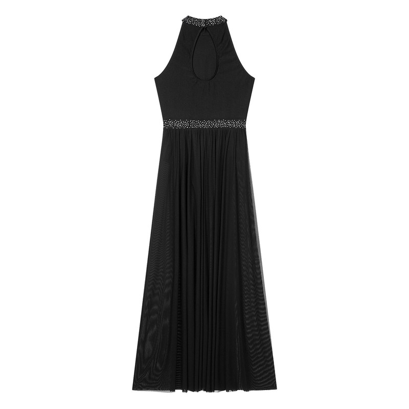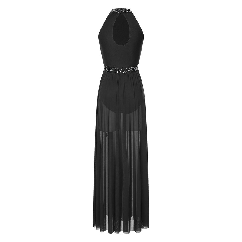 Sleeveless dance dress for women, keyhole back and mock neck with press buttons for easy wearing and taking off.