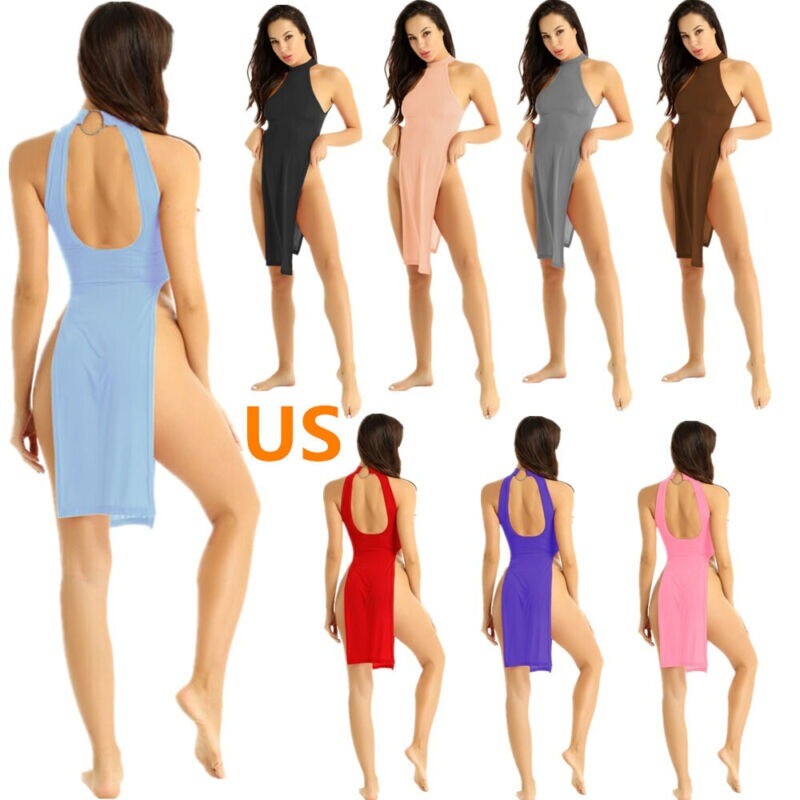 Womens Scoop Neck Wide Shoulder Strap Bodycon Dress Hollow Out Mini Dresses Lingerie Nightwear.