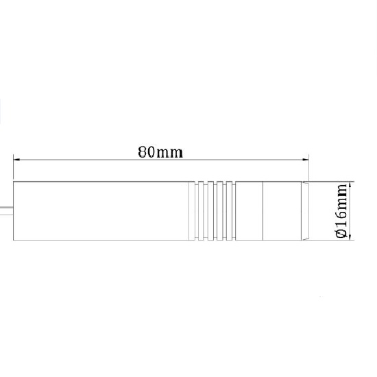 Isoliertes Punkt Lasermodul, rot, 635nm, 1mW, 3-5V DC, 16x80mm, Klasse 2, Fokus 7m