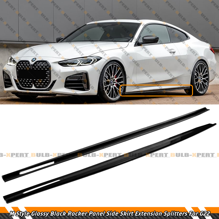 For 2021-26 BMW G22 G23 430i M440i 2DR M Style Gloss Black Side Skirt Extension