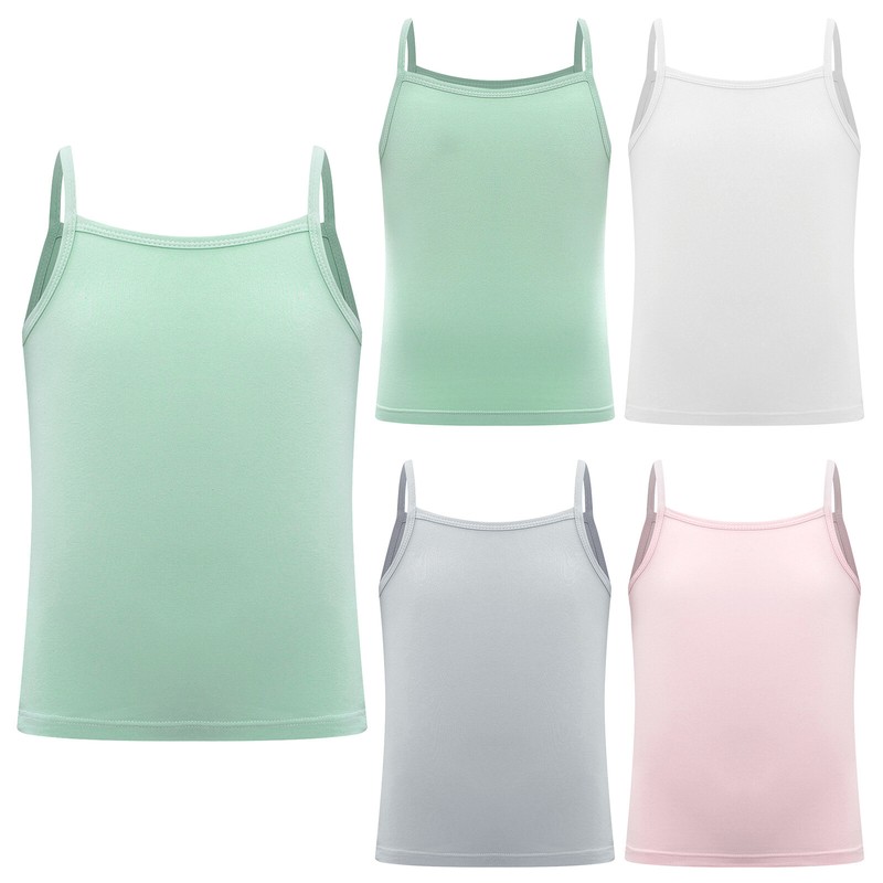 Spaghetti straps vest for kids girls, ribbed design, solid color, cropped length.