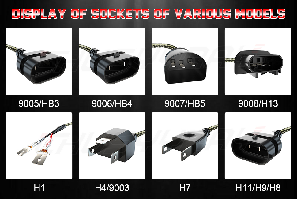 1. Bulb size:9005 (High Beam) + 9006 (Low Beam) ,as long as the halogen bulb size is the same with this, it will fit directly.