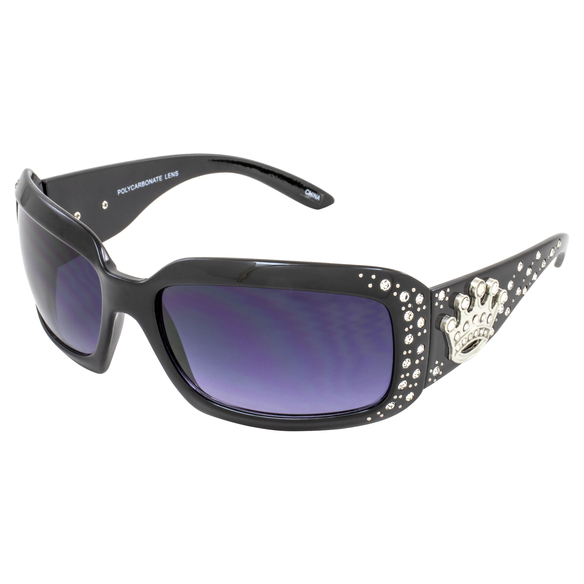 Ladies, it's time to rule the road with the Rodeo Queen Women’s Motorcycle Sunglasses – where high-octane fashion meets unbeatable protection! Imagine riding into the sunset, your face framed by bold, oversized shades that catch the light just right. Perfect for the fearless woman who knows her style is as important as her safety. We get it – finding sunglasses womens trendy enough to blend glamor and protection is tough. You’re tired of flimsy frames that shatter or lenses that fail to block out the harsh sunlight. But fear not! Rodeo Queen is here to rescue your eyes and elevate your style. With shatterproof polycarbonate lenses and a UV400 filter, these womens motorcycle sunglasses offer maximum protection from harmful UV rays, ensuring your eyes stay safe while you ride. And thanks to the scratch-resistant coating, you can toss them in your bag without a worry. The glossy black frames, decked out with shimmering rhinestones and edgy metal studs, bring a touch of luxury to your biker chic look. These are not just any shades; they are bling sunglasses for women who aren't afraid to shine. The silver metal crown accent piece on the temples isn’t just an accessory; it’s a symbol of your status as the queen of the road. The gradient smoke lenses give you optimal visibility whether you're riding in the blinding noon sun or through the dusky twilight. The Rodeo Queen’s lightweight design means you can wear them all day without the discomfort of heavy frames. The wide arms provide that extra support and stability, ensuring they stay put no matter how wild the ride gets. These womens rhinestone sunglasses are the perfect combination of comfort, style, and functionality, making them the go-to sunglasses with bling for any occasion. Turn heads, protect your eyes, and feel like royalty with the Rodeo Queen Sunglasses. Whether you’re looking for womens bling sunglasses or the ultimate womens oversized sunglasses, your ride deserves nothing less.