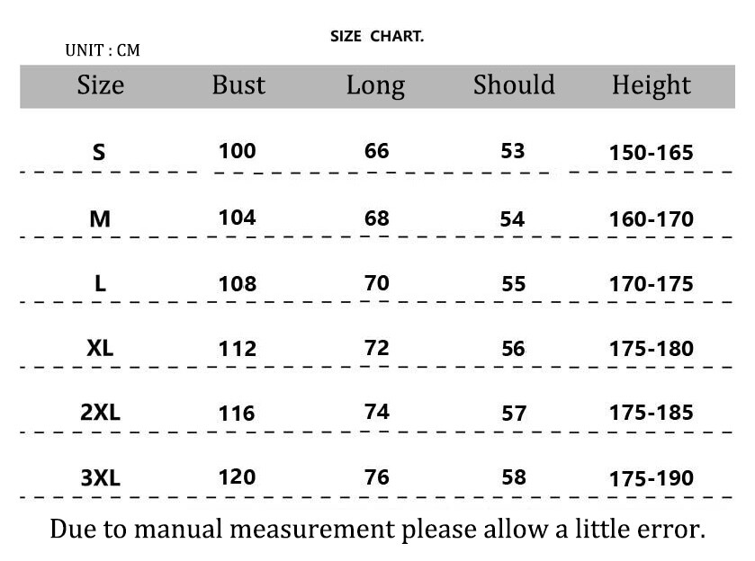 2. The label size is Asian size, the parameters of each size are measured by placing the product on a flat plate to measure its outer size. Please measure by yourself before placing an order, if you are not sure, please contact us.
