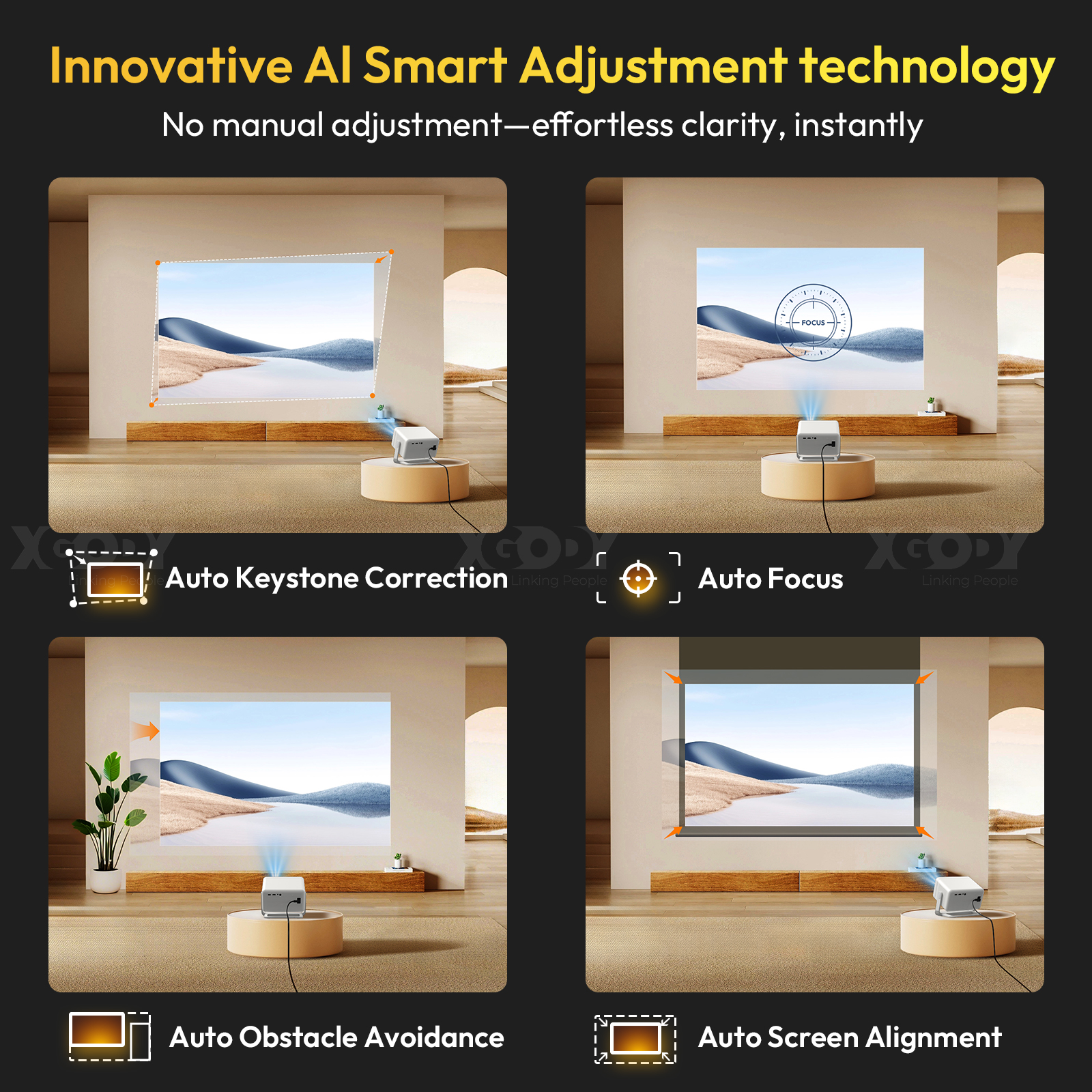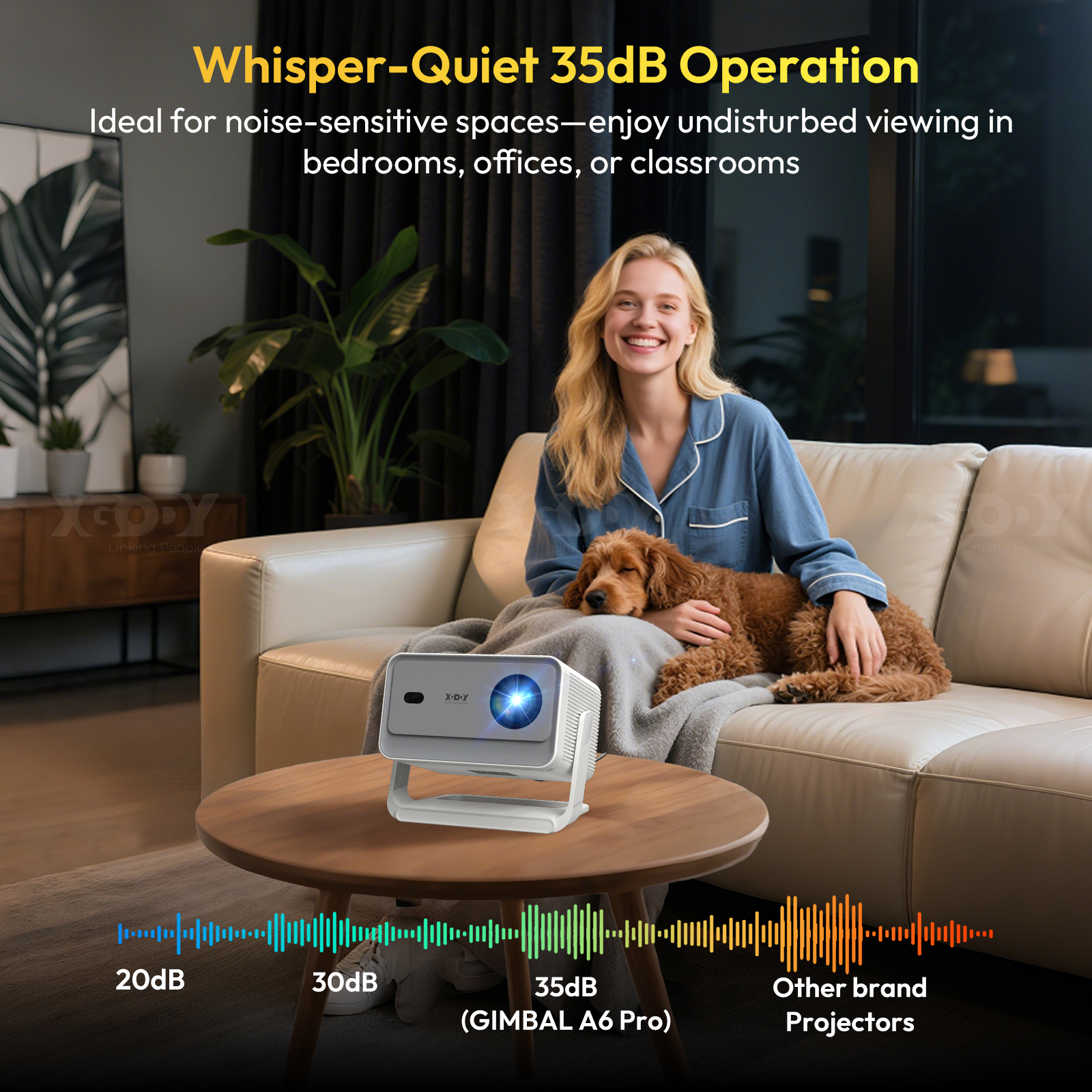 The Gimbal A6 Pro home theater projector is a true 1080p Full HD projector with a resolution of 1920 x 1080 pixels and 4K support. It offers 25,000 lumens and a high contrast ratio of 10,000:1. Thanks to HDR10 high dynamic range video decoding, image details are more vividly displayed. 4K videos can be played directly, ensuring richly detailed presentations. Whether indoors or outdoors, a first-class HD projection experience is guaranteed.