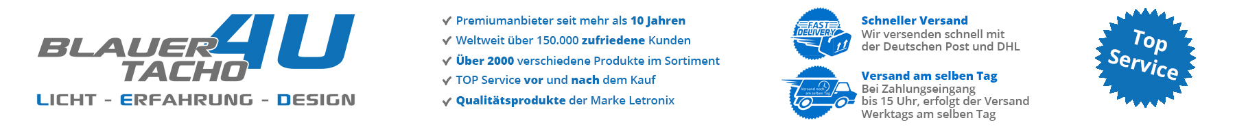 - Verwendung nur im Rechtsverkehr. Fahren im Linksverkehr (z.B. England) erfordert Rückrüstung auf Halogenlampen.