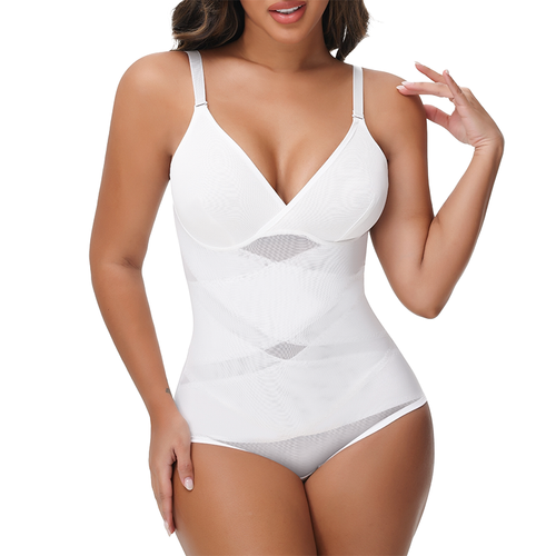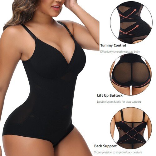 【Special Design】Body Shapewear with V neck and adjustable spaghetti strap,providing great support and coverage.With built in bra,you can wear it without bra.X-cross design on the midsection shows your sexy curves and offers tummy control like a waist trainer at the same time.X-shaped back covers back fat as well as improves your posture.Our plus size shapewear body suits flattens your tummy,lifts up your back and smooths fat,great choice for you.