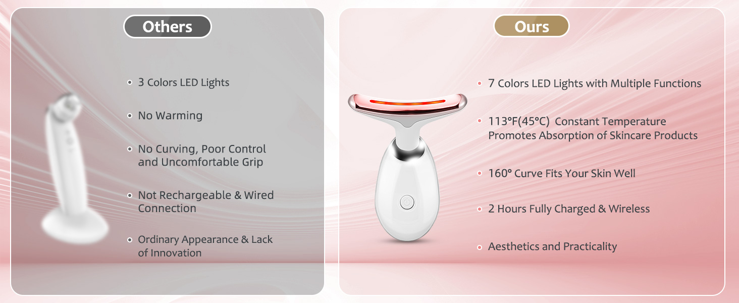 7 Color Deluxe Skin Care Tool - This multifunctional face neck massager has 7 light modes that can improve various skin problems and keep your skin youthful & healthy. It can also be used on other body parts, tightening sagging skin.
