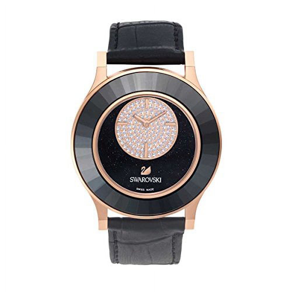 Pfeaturing Trendy Rose Gold And An Innovative Asymmetric Dial, This Swarovski Timepiece Will Add An Eyecatching Touch To Your Everyday Look Specifications Case Rose Goldtone Coated Stainless Steel, 39Mm Bezel Faceted Crystal Dial Black Motherofpearl, Offcenter Circle In Crystal Pave Numbers Rose Gold Pvd Index Markers, Swan Logo At 6 Oclock Strap Black Calfskin Leather With Crocodile Structure And Rose Goldplated Buckle Water Resistant Movement Swiss Quartzp SKU:PETSUB0163GG39G Create an edgy look with this Octea black strap watch from Swarovski.39mm rose gold plated stainless steel caseFaceted crystal bezelBlack mother of pearl dial with off center crystal pave circleRose gold plated indices, hands, and Swan logoBlack calfskin leather strapRose gold plated buckleSwiss Quartz movementSwarovski Style #: 5095484 SKU : ADIB0163GG39G