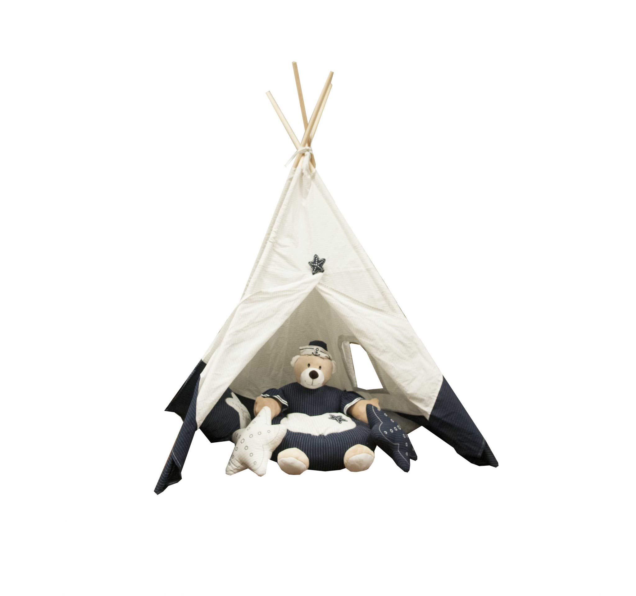 Give your kids a designated space to play and hide with our beautiful tent. The frame is made of pinewood with fabric coverings. Assembly is easy and straightforward. The tent's door is about 3 feet high and it can be held open with the attached velcros. The base of the tent is 4 feet by 4 feet so it has enough space for your kids to crawl and roll around. This will make a perfect gift for your kids to enjoy camping at home!
