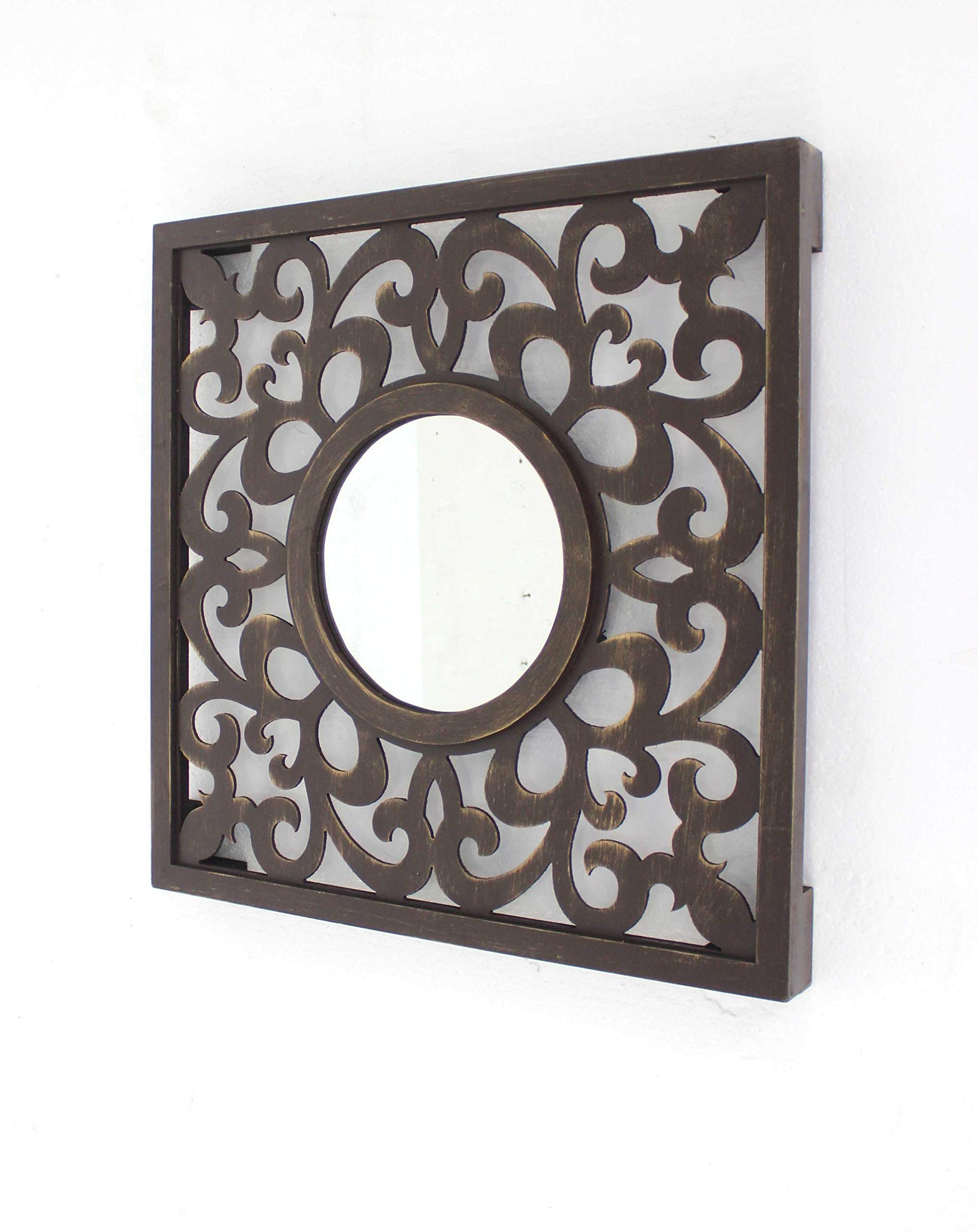 24 Brown Circle In Square Vintage Style Framed Accent Mirror