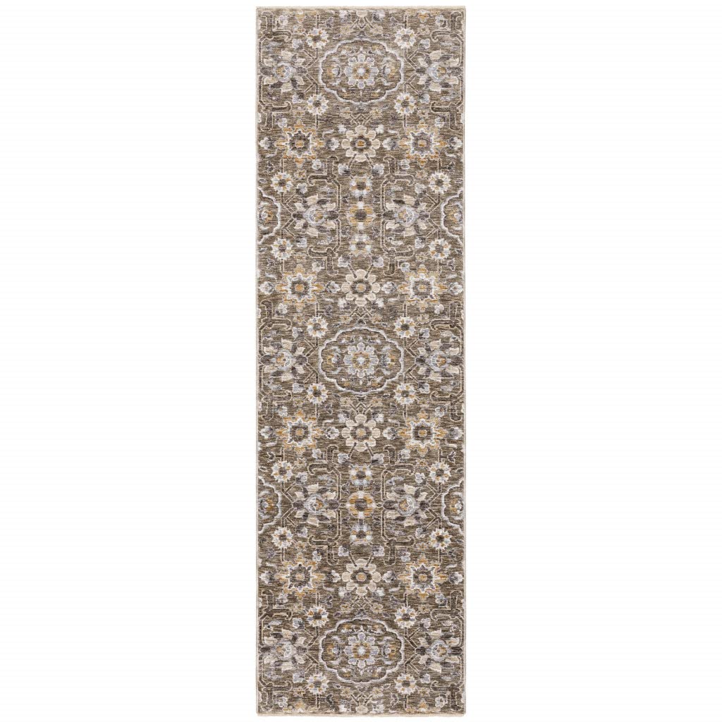 Add great coloration and comfortable texture to your space with this 2 x 8 gray and tan floral power loom stain resistant runner rug with fringe. This runner shaped rug features a floral design in gray and tan to give it visual interest. A classic shape marries with good looking design for your space Ideal for spaces with kids and pets, this rug is stain resistant to help repel stains and spilled liquids. Tassel ends bring a timeless and fashionable look to your interior. Place this area rug against a hardwood or tile floor and it will enliven your living space with style and sophistication. Features. Inherently stain, fade, wearresistant for fussfree maintenance. Low 1/4in pile height is perfect for easy maintenance. Cut pile for a smooth surface. Classically shaped, this rectangular runner rug is a great way to accent your room or hallway. The use of a rug pad is recommended with this rug to help reduce the risk of slipping and to protect your floors. Fringed tassels on the edges give this rug a special flairSpecifications. Rug Size 2 x 8 ft.. Fringe / Tassel Yes. Product Resistances Fade Resistant. Floor Heating Safe Yes. Stain Resistant Yes. Rug Pad Recommended Yes. CPSC 16 CFR 1630 Compliant Yes. CPSC 16 CFR 1631 Compliant Yes. Pile Height 0.23. CPSIA Compliant No. Carbon Care Certification No. CarbonFree Certified No. CPG Compliant No. EPP Compliant No. EPA Safer Choice No. Indoor Advantage Certified No. Indoor Air Quality Certifications No. Reclaimed Wood No. Recycled Content No. Rug Shape Runner. GreenSeal Certified No. OekoTex Certified No. Better Cotton Initiative No. Technique Power Loom. UV Protection No. Reversible Rug No. Lifestage Adult. Cradle to Cradle Certifications No. Bluesign Certified No. USDA BioBased Product No. Responsible Wool Standard Textile Exchange Certified No. Construction Machine Made. Purposeful Distressing Type No Distressing. Product Care Vacuum with no beater bar/rotating brush. Commercial Use No. Room Living Room. Material Pol